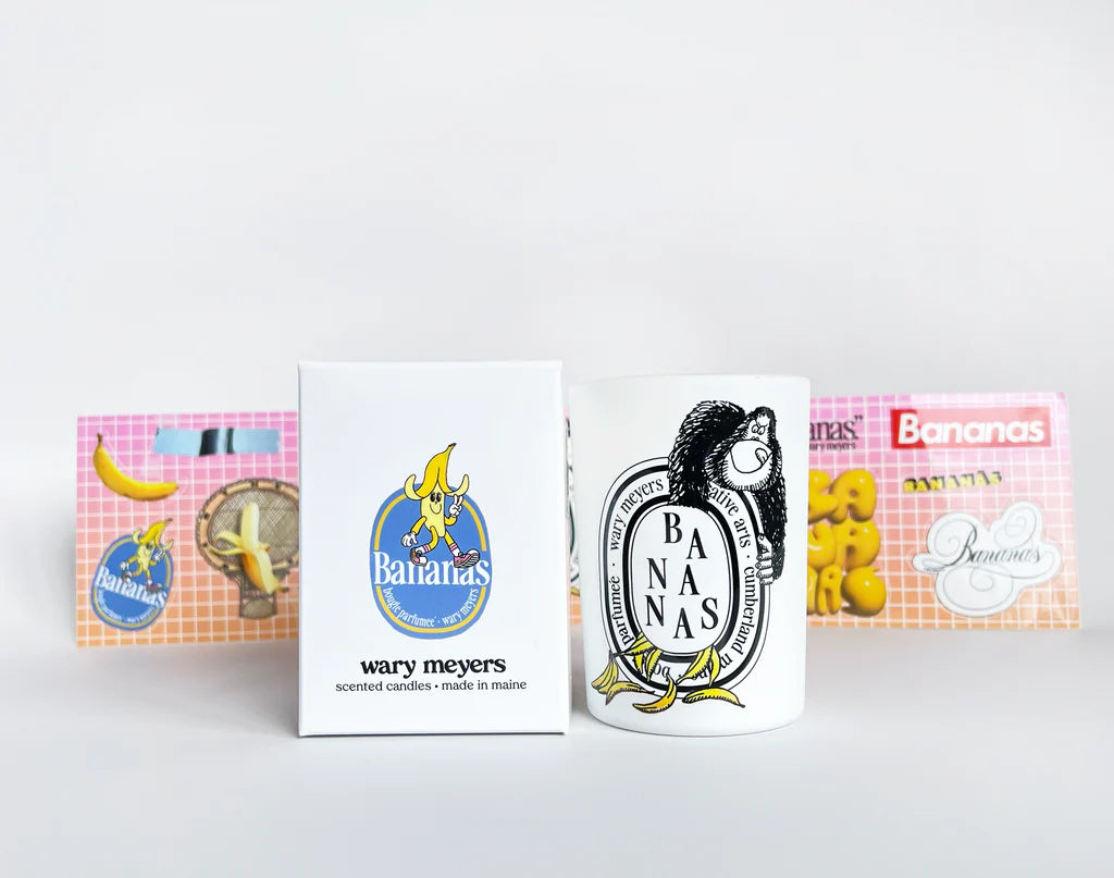 One of our favorite candles, the limited edition "bananas" candle with included sticker sheet to decorate your own candle jar