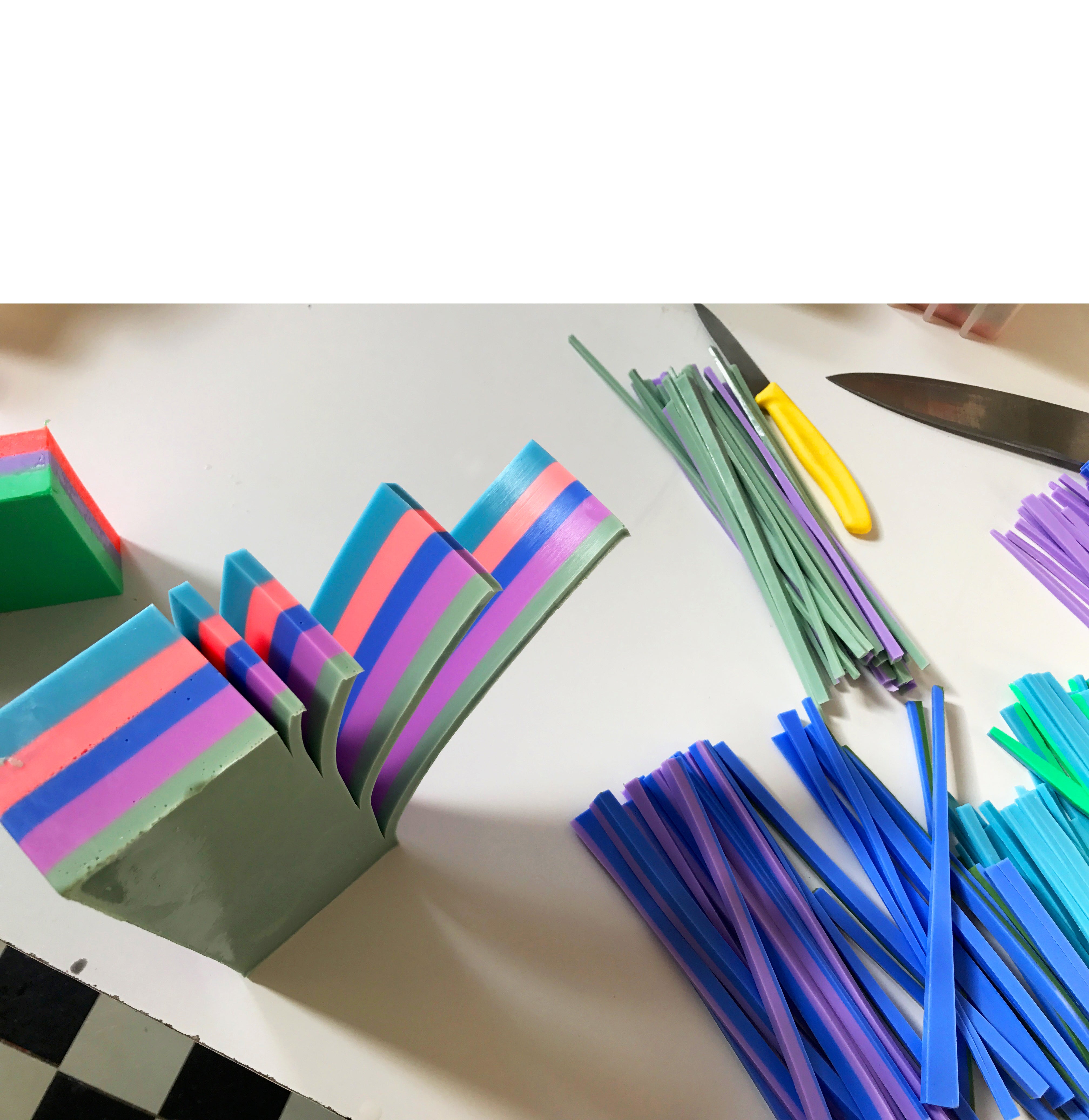 Behold the conception of our very first soap. We wanted them to look like mini scuptures, much like the Sottsass striped columns