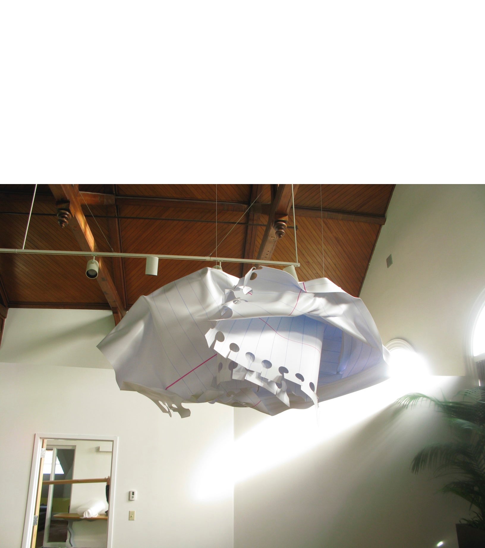 Giant fiberglass crumpled paper ball in the conference room. This represents the creation and editing of ideas. The pen and flowing ink in the entryway lets you know you’ve just entered a creative space, where the ink is flowing!