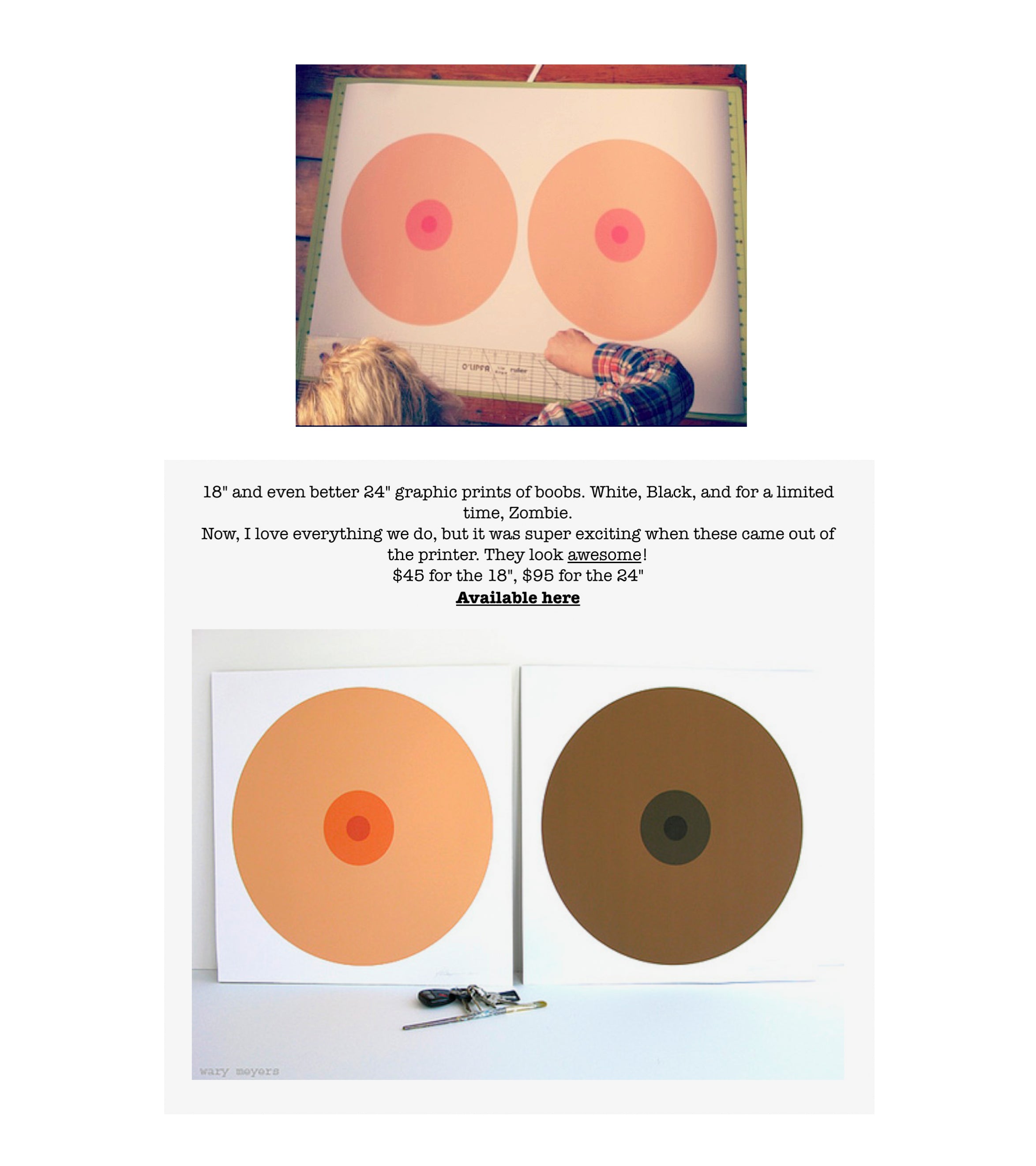 Our boob prints came about from our interest in graphic design and hard-edge painting.